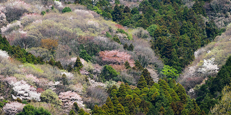 宝篋山もかつての山火事で杉林が焼けた跡に、サクラが根付いたと聞きました。