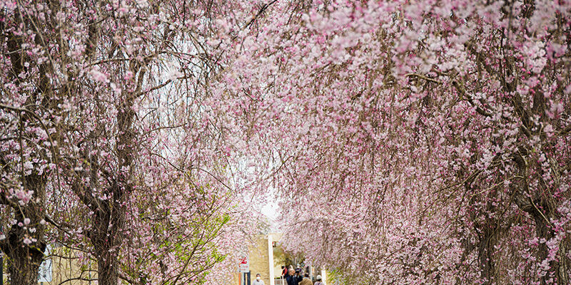 八幡宮の階段を登ると、小田のまちが花に彩られていました。