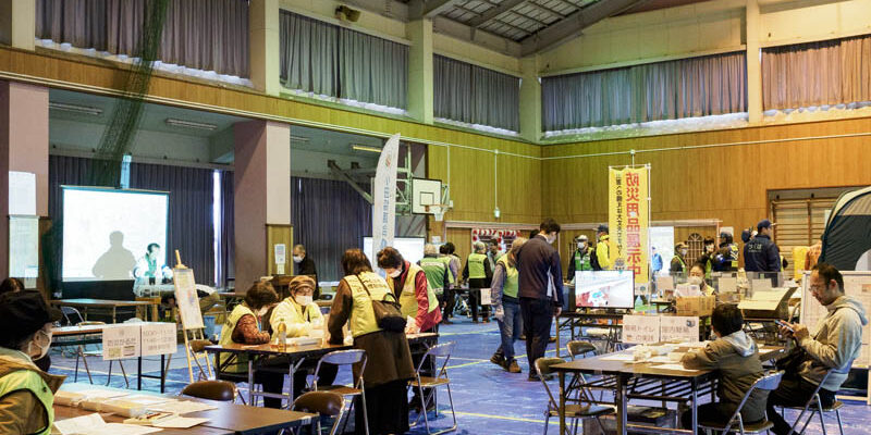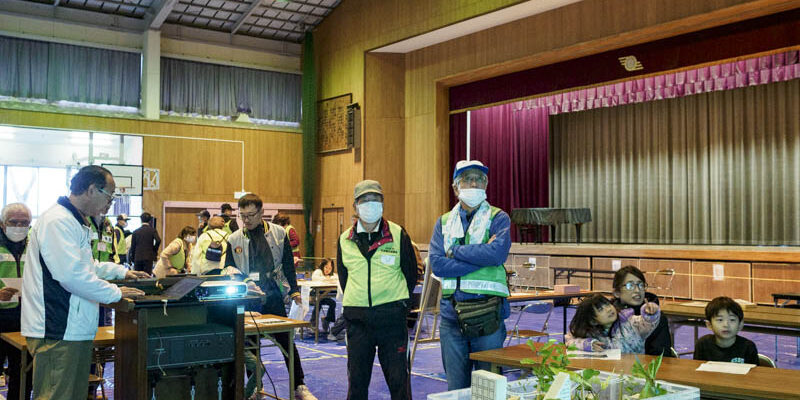こちらは災害時に役立つ知識や体験を楽しみながら学ぶために、つくば市小野川地区の方々が小野川小学校で開催したイベントです。