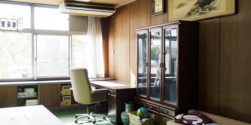 さらに新しく借用する職員室と校長室にも、廃校以来の大量の職員机などが埃まみれで残っていました。