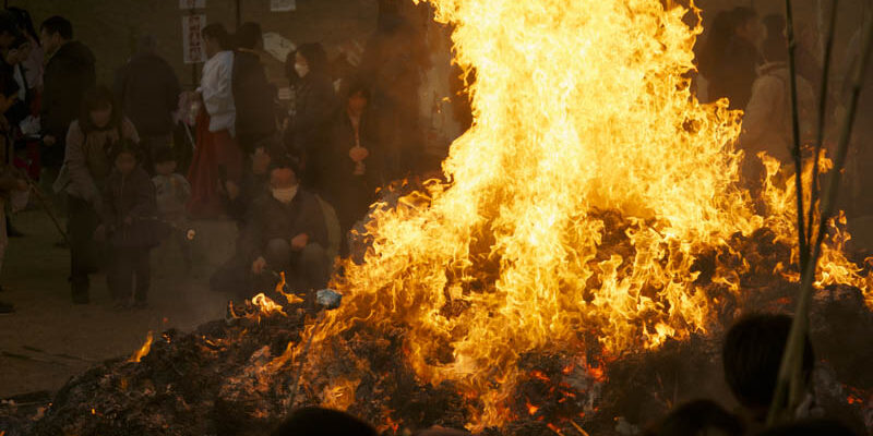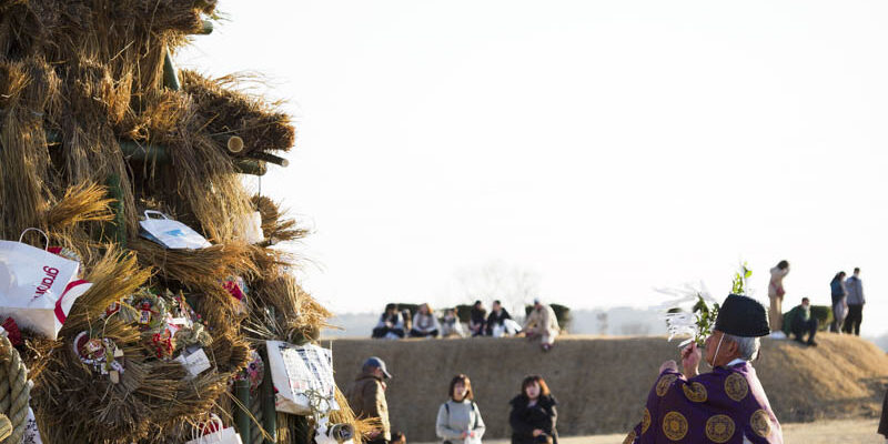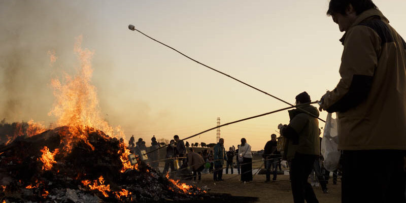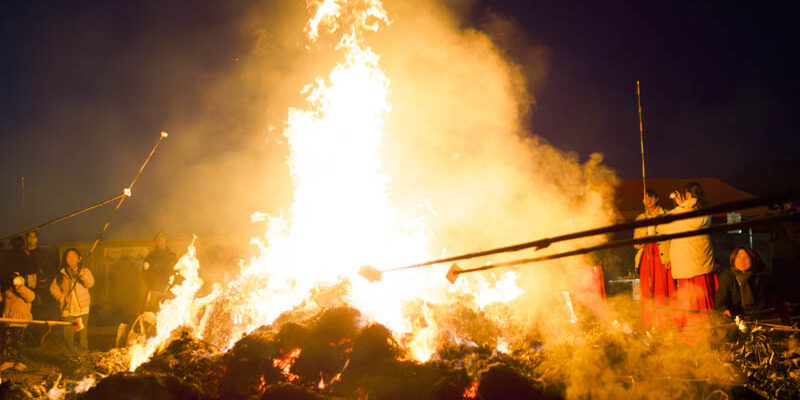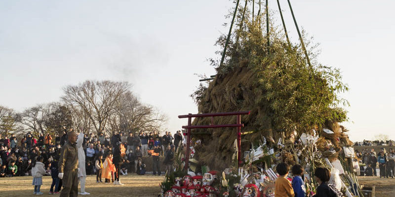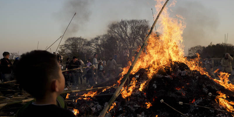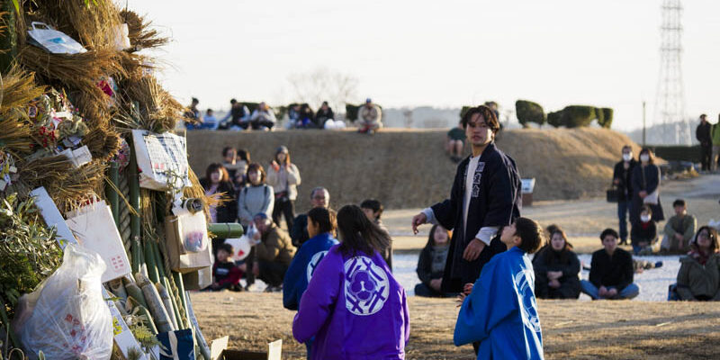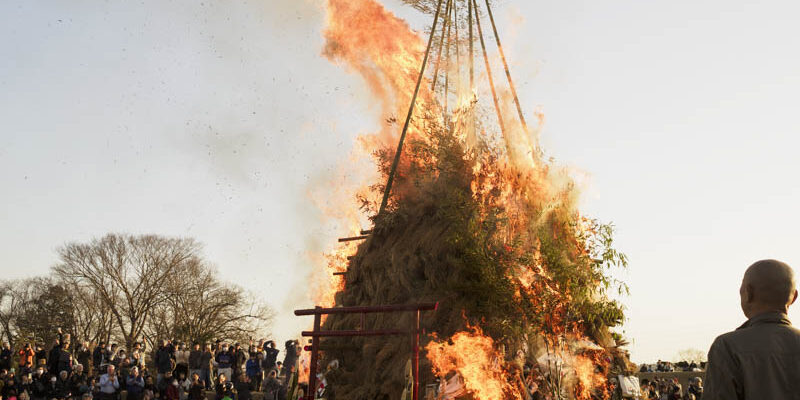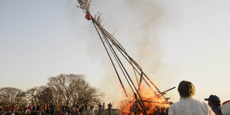 年神様を見送り無病息災を願う「どんど焼き」が、2026年1月17日小田城跡で行われました。