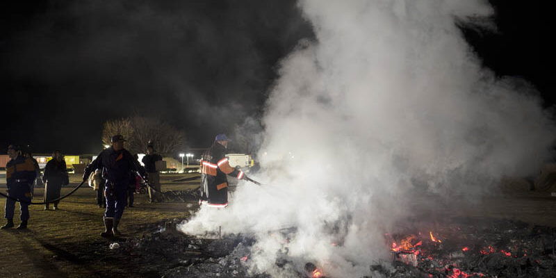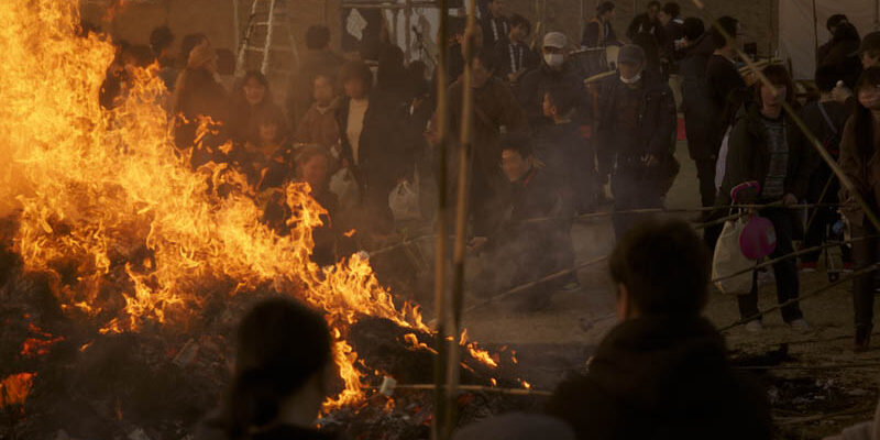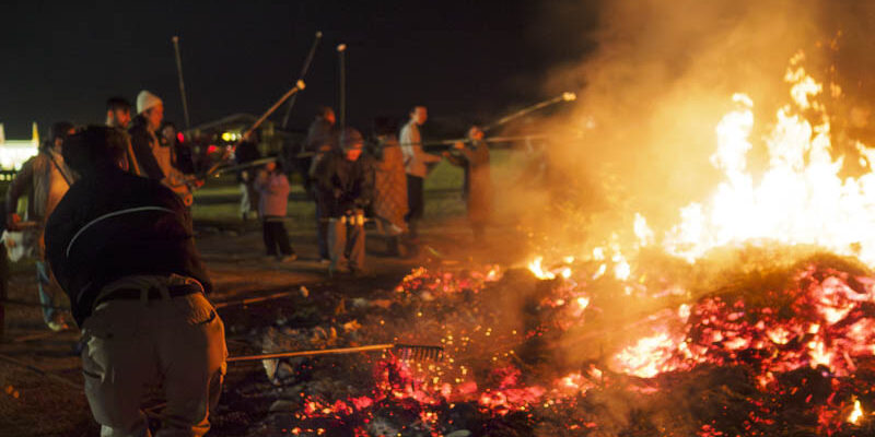 最後にはよく燃え尽きるように、スタッフが火を広げていきます。
