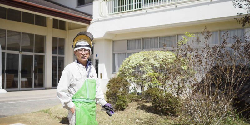 機材一式を搭載した軽トラで乗り付け、バサバサと雑草や庭木の枝を刈り落としていきます。