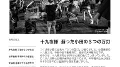 つくば市小田には元々「3つの万灯」がありました。小田東部の十九夜万灯、小田西部の天神様万灯、小田中部のお不動様万灯です。そのうち、十九夜万灯は30年ほど前に絶えてしまっていました。これが八坂神社お囃子保存会の方々により、2024年に囃子込み...