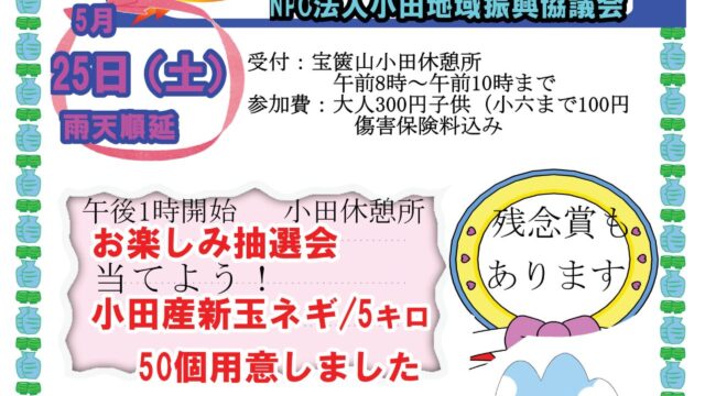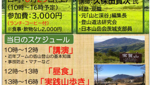 小田協議会会員で、小田で街の駅 タマリバを経営するNPO法人TSUKKURAさんから、イベントのご案内です。登山の専門家と、風薫る初夏の宝篋山を歩きます。主催者から一言本格的夏山シーズンを前にして、山の基本を学びましょう。お電話で予約・問合...